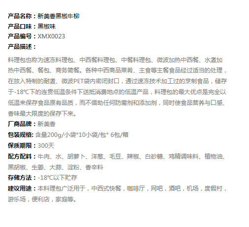 新美香黑椒牛柳200gx60包
